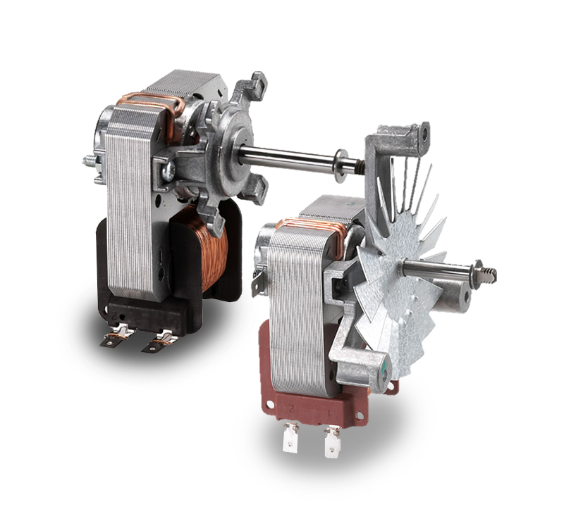 Shaded poles motors suitable to ensure the correct heat distribution inside the cavity of both domestic and professional ovens or small heating systems. Available in different electrical and mechanical configurations.