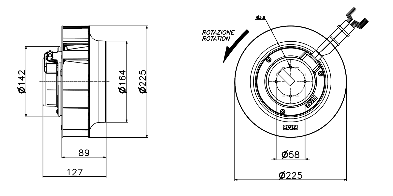 | Diametro girante | 225 mm |