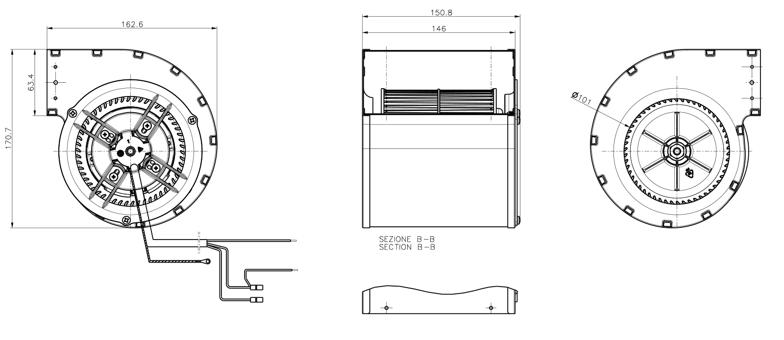 Ventilatore a Doppia Aspirazione con motore a condensatore